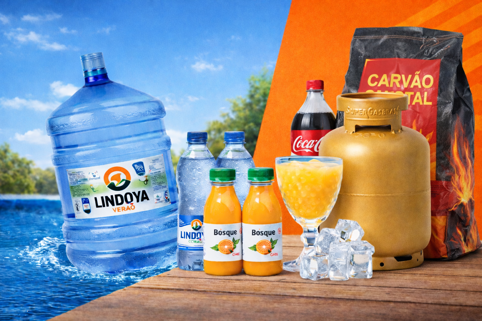 Da mesma forma, a água mineral, sucos de laranja, acessórios e demais produtos são armazenados em ambientes organizados, higienizados e controlados, respeitando normas sanitárias e condições adequadas de conservação, garantindo pureza, frescor e integridade até o momento da entrega.